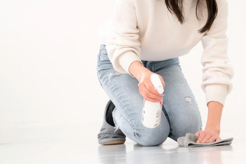 フローリング全体にスプレーすると濡れすぎる恐れがあるため、部分ごとに拭くのがポイントです。